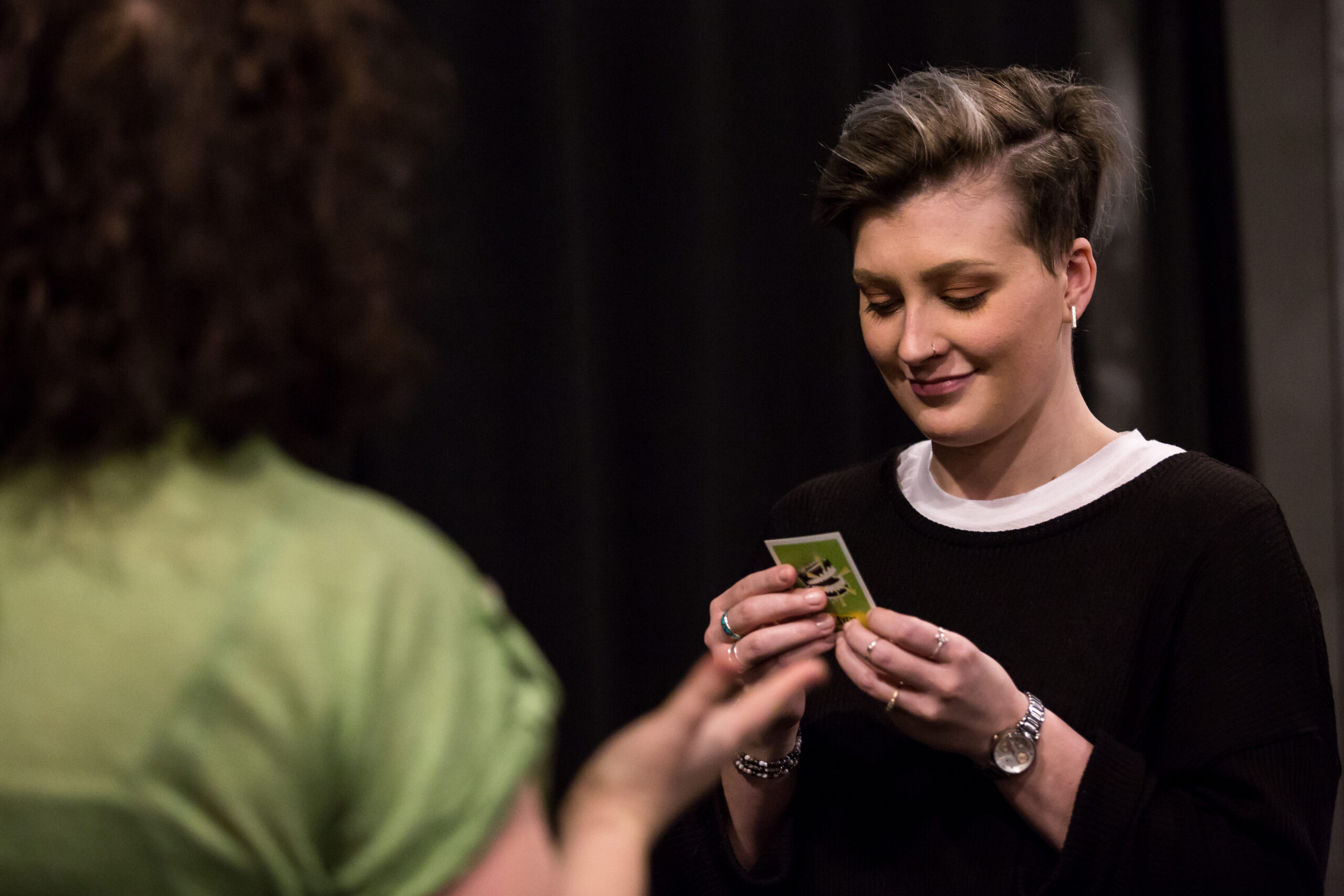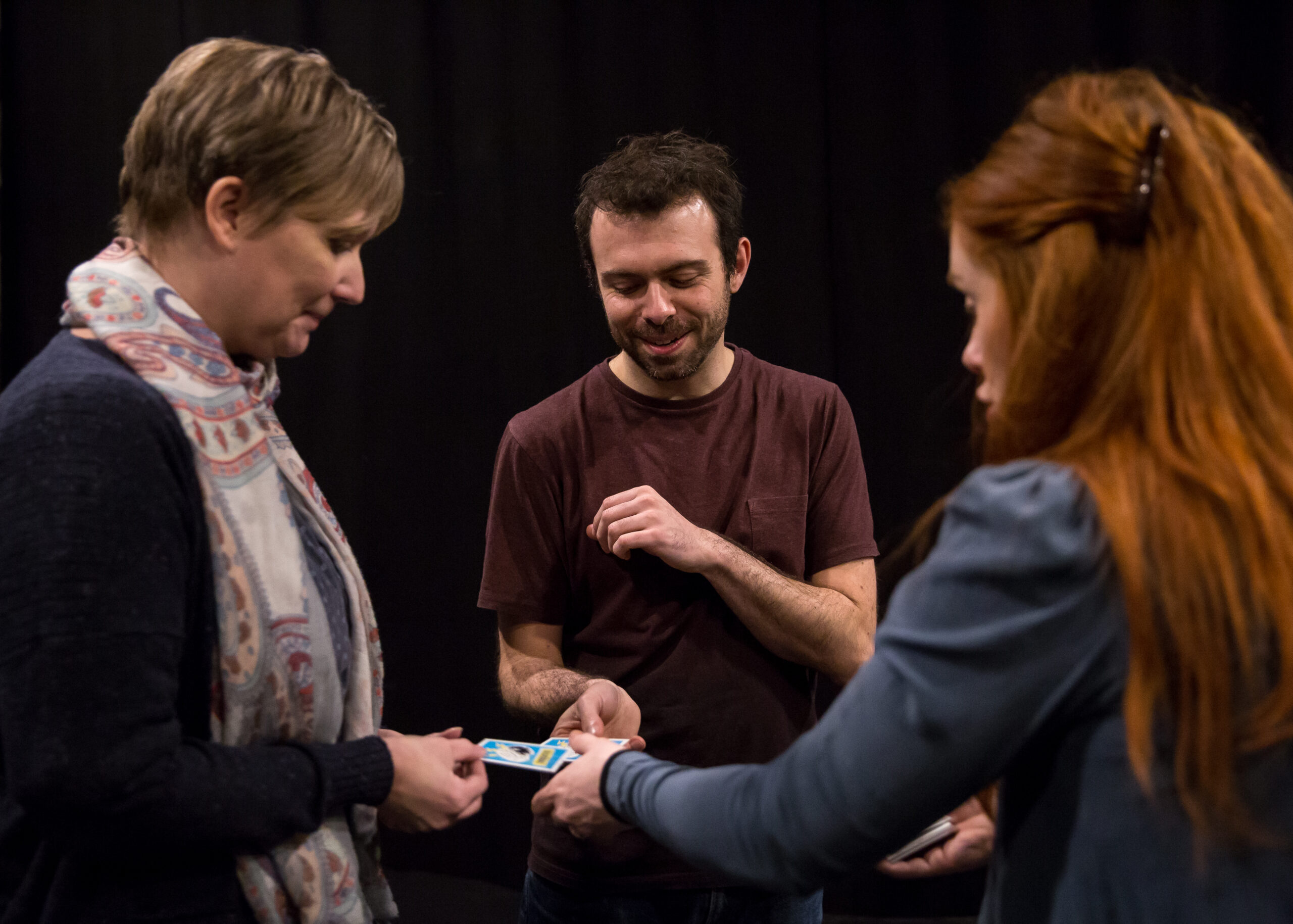 The Theatre Creativity Cards are designed to get you thinking in new and unexpected ways. It’s simple: you turn a card over, read the word or statement and respond. You can use the cards to improvise and generate ideas spontaneously or you can use the cards over a longer period of time to discuss and generate ideas before staging them.