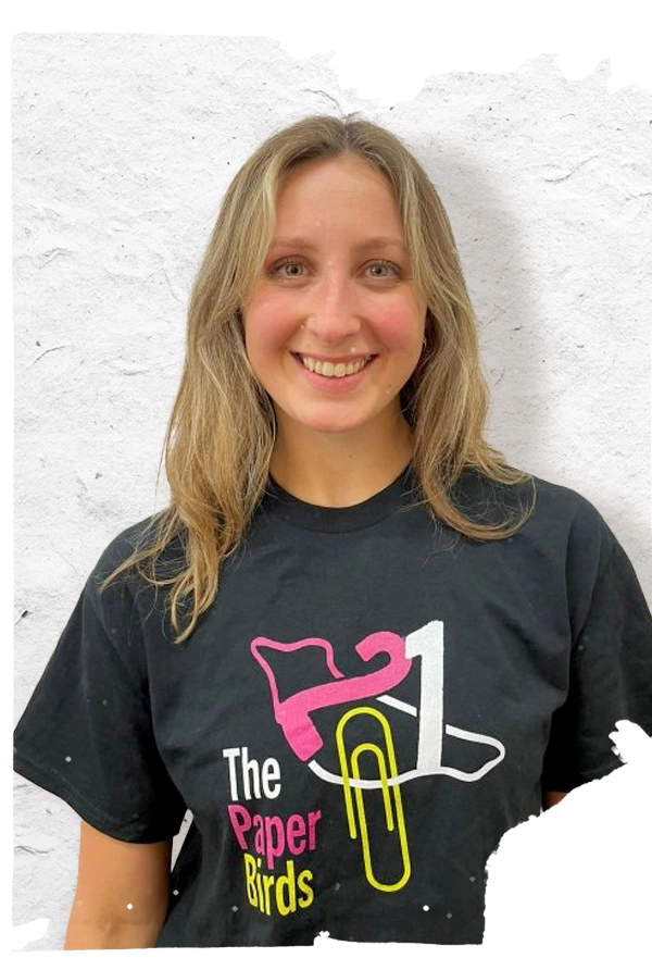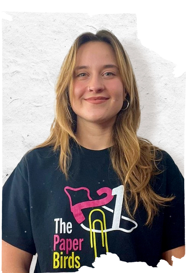 Meet the Team JEMMA MCDONNELL Co-Director jemma@thepaperbirds.com 07810 435 782 KYLIE PERRY Co-Director kylie@thepaperbirds.com 07855 098 063 CHARLOTTE KALANTARI-GREGORY Executive Producer charlotte@thepaperbirds.com 07950 151 024 GEORGIE COLES Participation Manager georgie@thepaperbirds.com 07403 917 202 JUSTINE WATKINS-FIFE Marketing & Audience Development Manager justine@thepaperbirds.com 07971 428213 ADELE SOUTO Producer adele@thepaperbirds.com 07944 077 204 EMMA GAYNOR Producer emma@thepaperbirds.com 07562 729 363 Our Participation Team Contact via main address education@thepaperbirds.com Rebecca Callow becky@thepaperbirds.com Claire Eden claire@thepaperbirds.com Ciaran Forde ciaran@thepaperbirds.com Elinor Solly elinor@thepaperbirds.com Gabriela Cerda gaby@thepaperbirds.com Iona Sheppard iona@thepaperbirds.com Izzy Jones izzy@thepaperbirds.com Klara Kaliger klara@thepaperbirds.com Camila Robinson camila@thepaperbirds.com