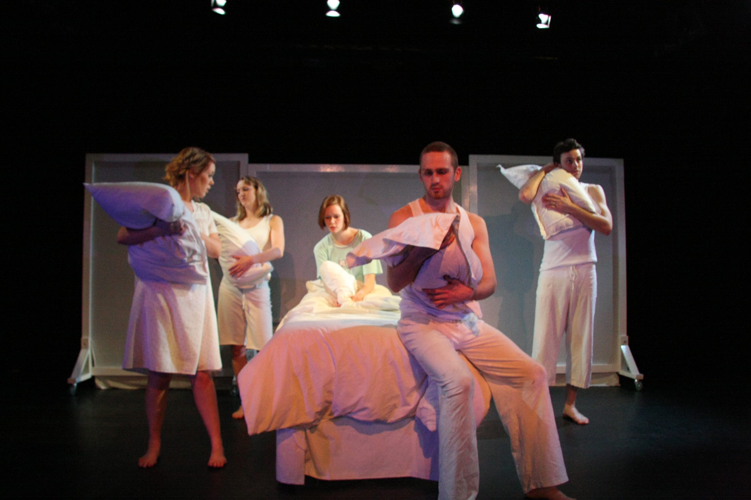 ’40 Feathered Winks’ explores the bed as a universal and personal place in which we shut out the rest of the world and experience some of the most profound human emotions and happenings. In this magical theatrical experience, the conscious and unconscious mind interweaves forming a patchwork story of eight characters as they journey in, under, and over their beds. Premiered at Edinburgh Fringe Festival, Gilded Balloon, 2007.